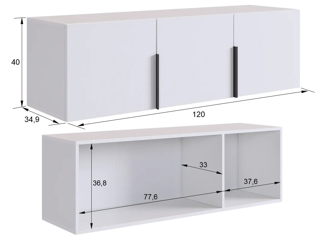 - Антресоль двухдверная L1200 Баско белое дерево