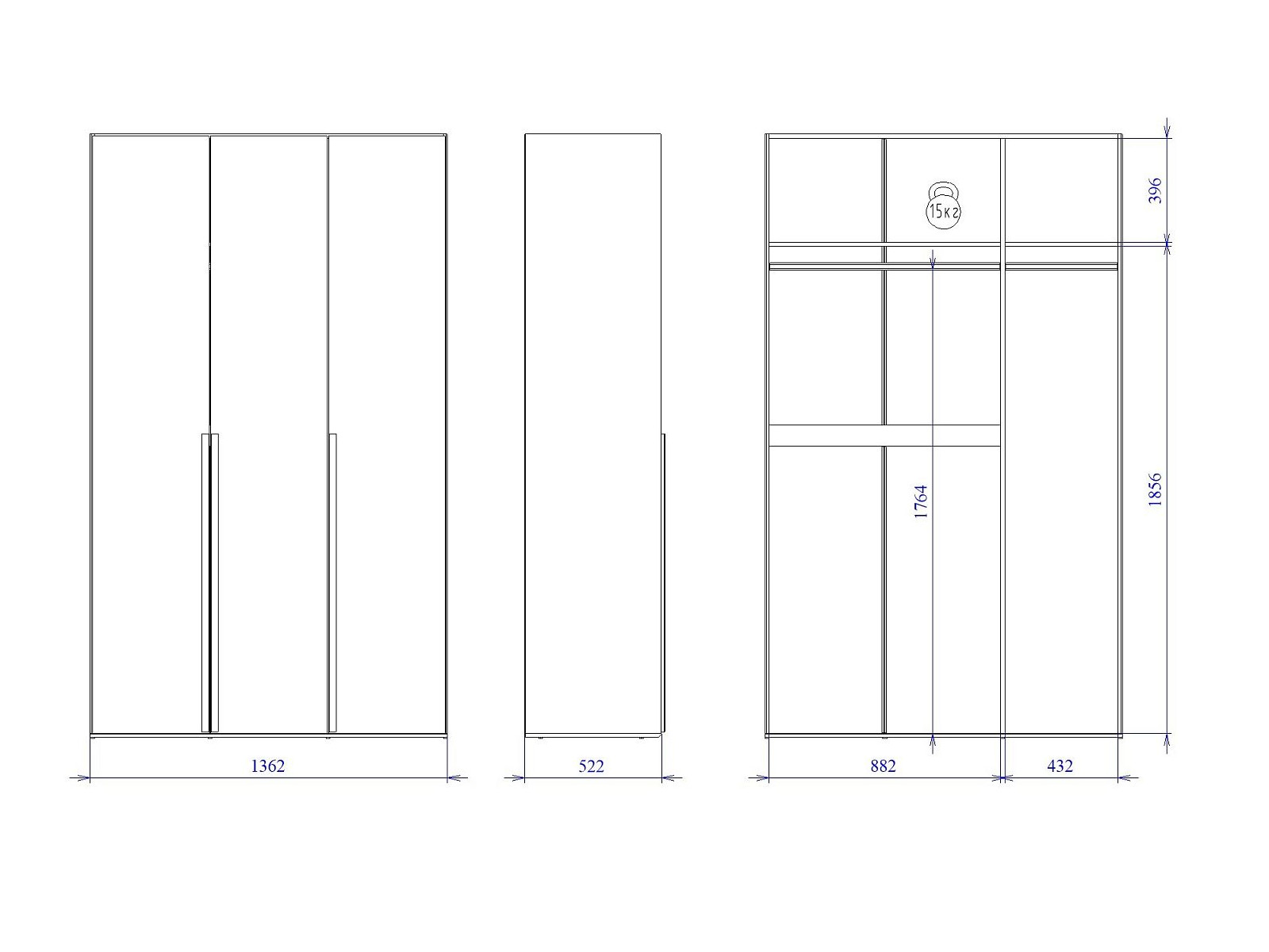 - Шкаф 3-дверный с одним зеркалом Аврора