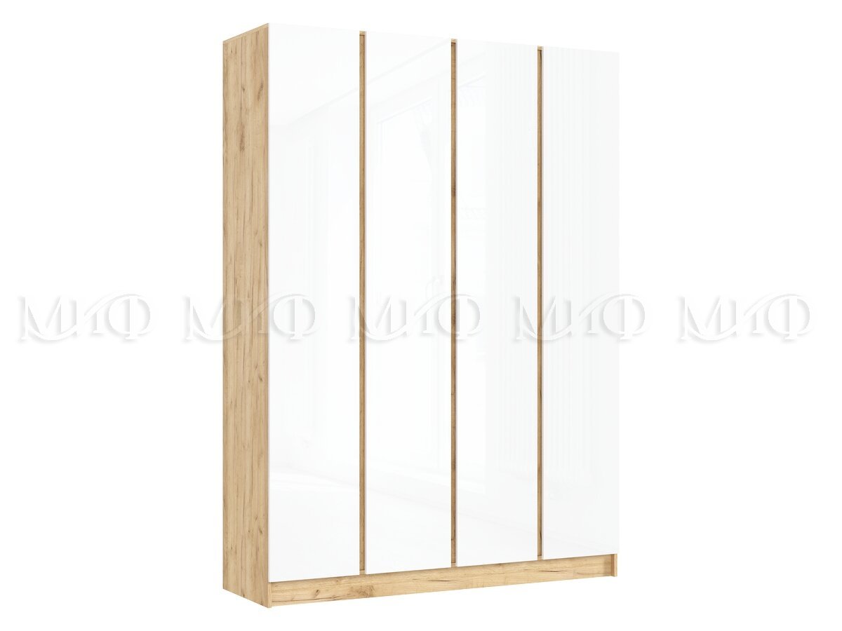 Шкаф четырехстворчатый Келвин (1600) Белый Глянец, Дуб Крафт-вставка дуб крафт