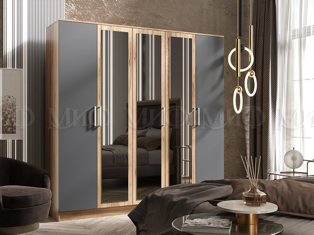 Шкаф для одежды 5-дверный Мартина Графит, Дуб крафт