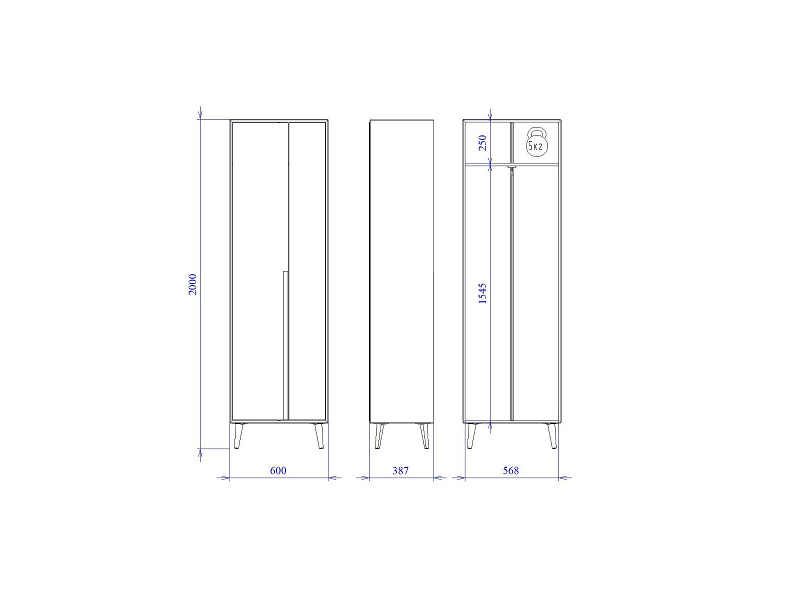 - Высота (мм) 2000
