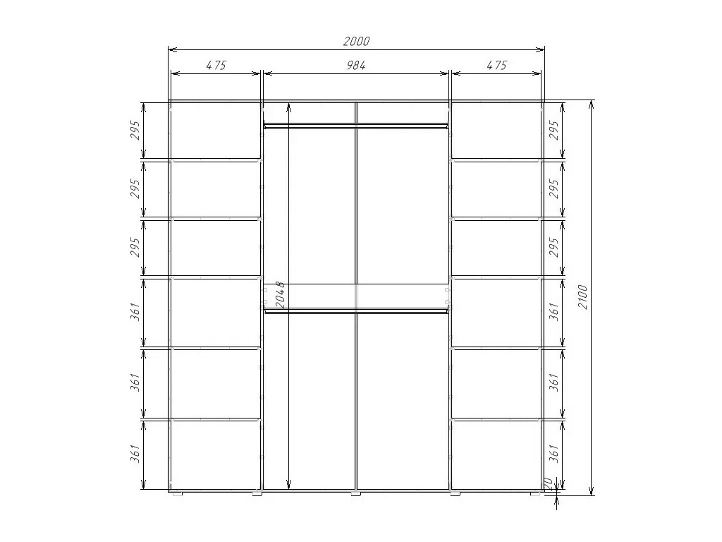 - Высота, мм: 2100