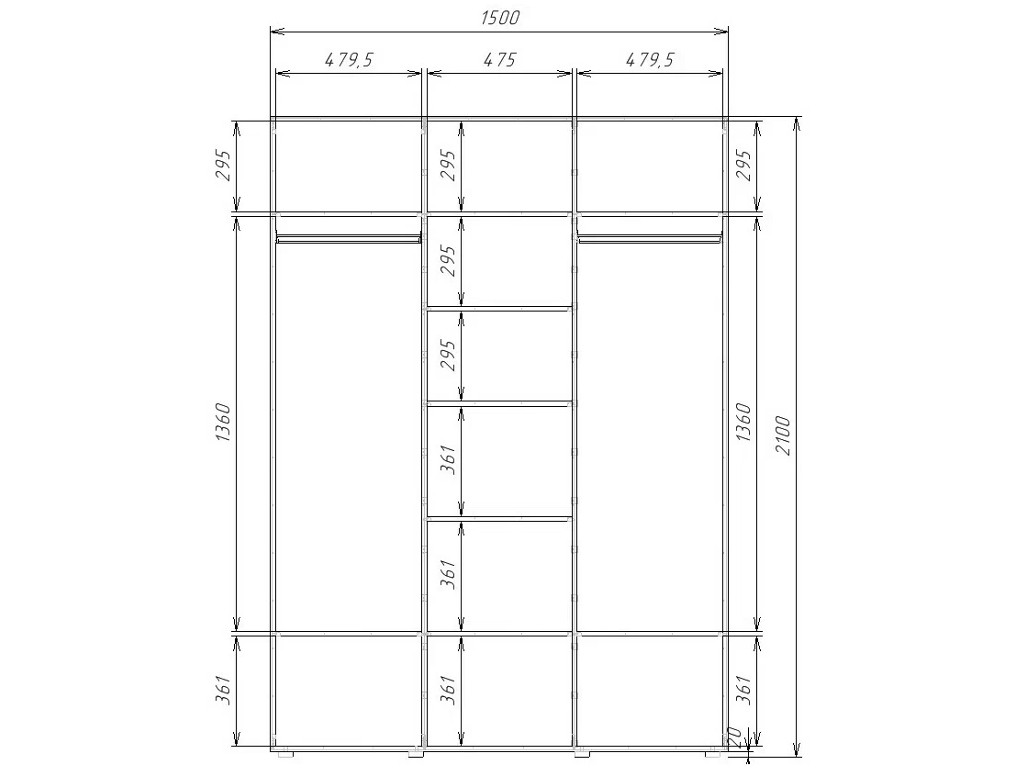 - Шкаф Гранд ГШК/3-21-15-222 (двери тип 2) с одним зеркалом