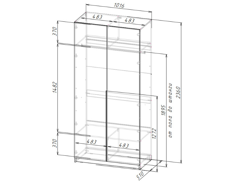 Габаритные размеры: Д.1016 х В.2360 х Г.510 мм.