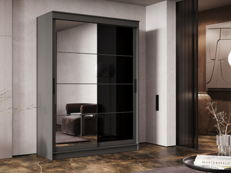 Шкаф-купе Гранд-1 1600 Графит-двери Зеркало-Лакобель черный