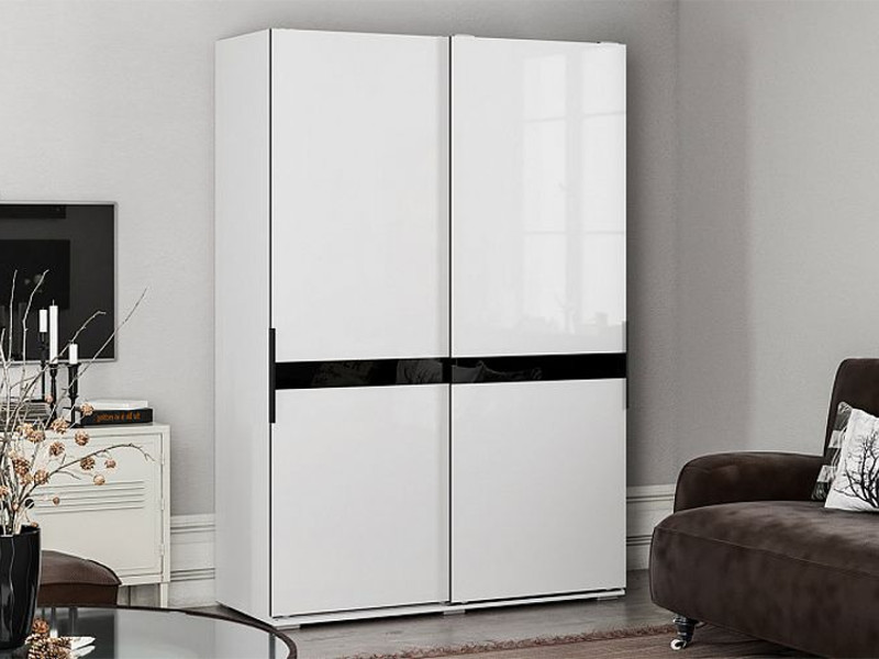 - Шкаф-купе Оскар двухстворчатый белый/белый глянец