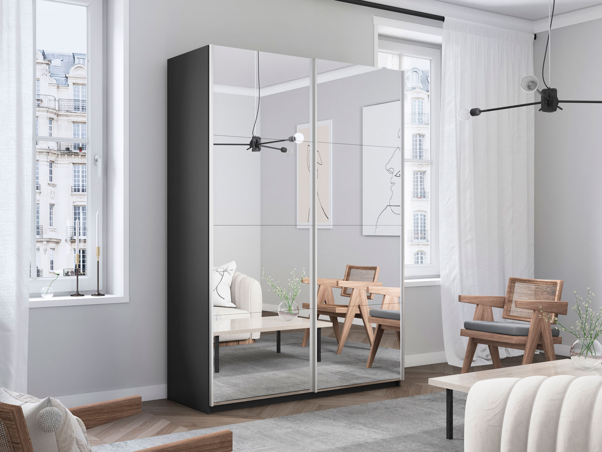 - Шкаф-купе Прайм 2-х дверный 1200 два зеркала Серый Диамант