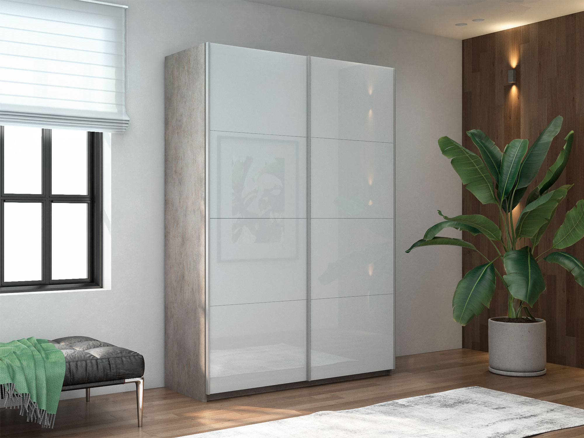 - Шкаф-купе Прайм 2-х дверный 1400 Стекло Белое Бетон