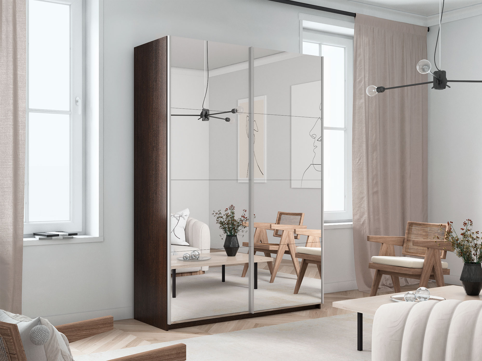 - Шкаф-купе Прайм 2-х дверный 1600 два зеркала Венге
