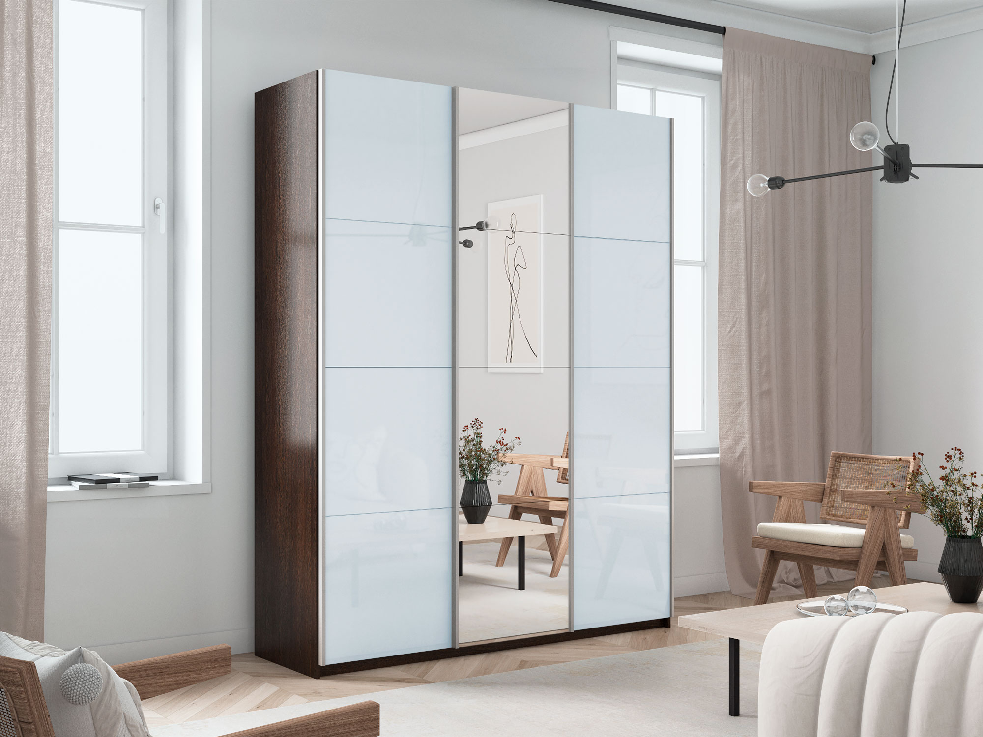 Шкаф-купе Прайм 3-х дверный 1800 два Стекла Белые/Зеркало Венге