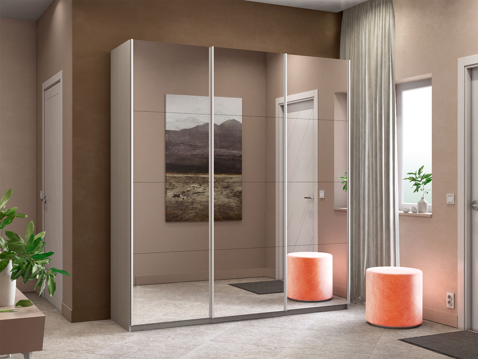 - Шкаф-купе Прайм 3-х дверный 1800 три зеркала Ясень Анкор Светлый