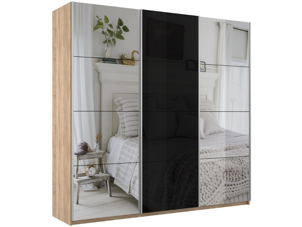- Шкаф-купе Прайм 3-х дверный 1800 Зеркало/Стекло Черное/Зеркало Сонома