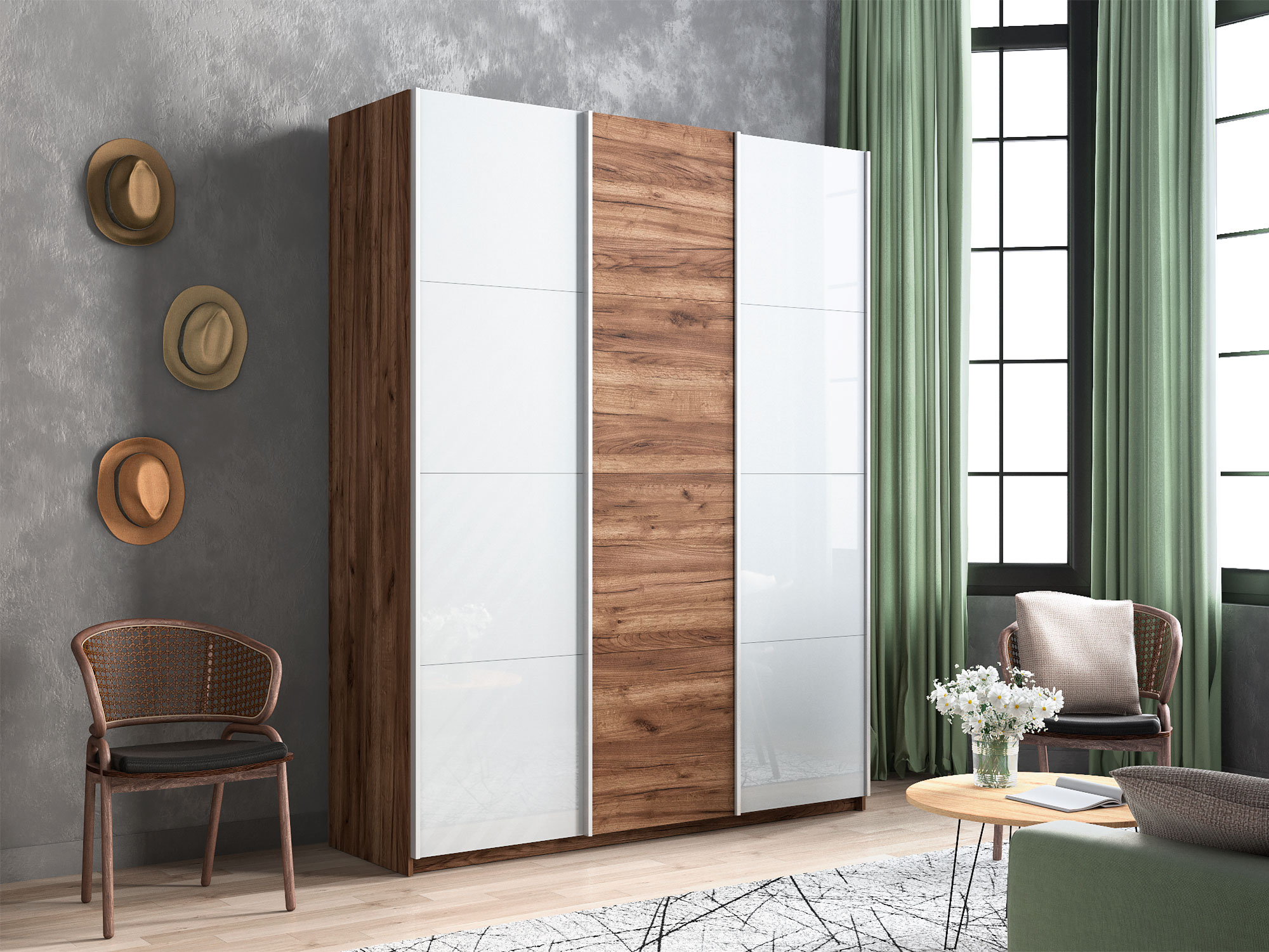 - Усиленная навесная система дверей помогает ходовому профилю выдерживать высокие нагрузки, а также сохраняет полезную площадь внутри шкафа, благодаря установке снаружи корпуса