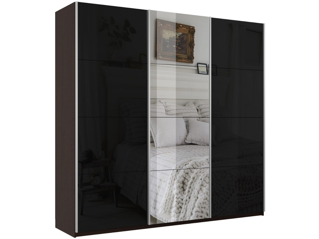 - Шкаф-купе Прайм 3-х дверный 2100 два Стекла Черные/Зеркало Венге