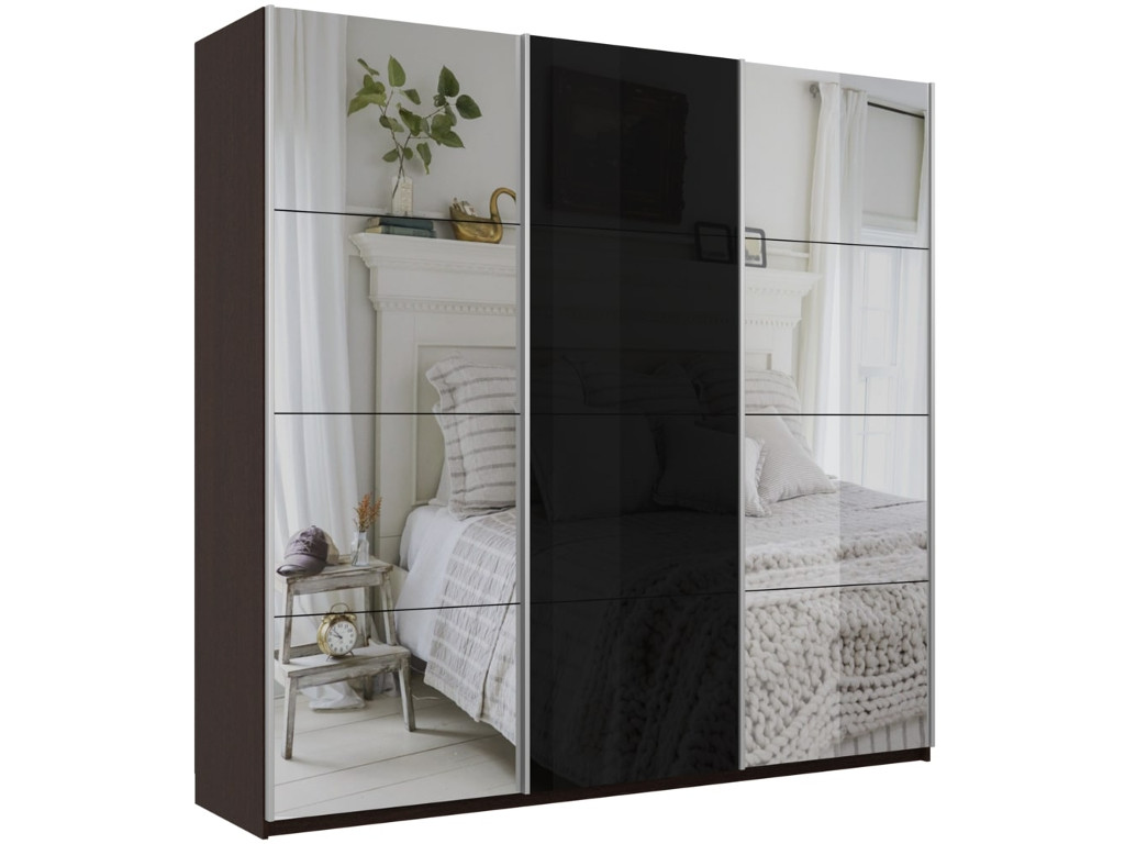 Шкаф-купе Прайм 3-х дверный 2100 Зеркало/Стекло Черное/Зеркало Венге