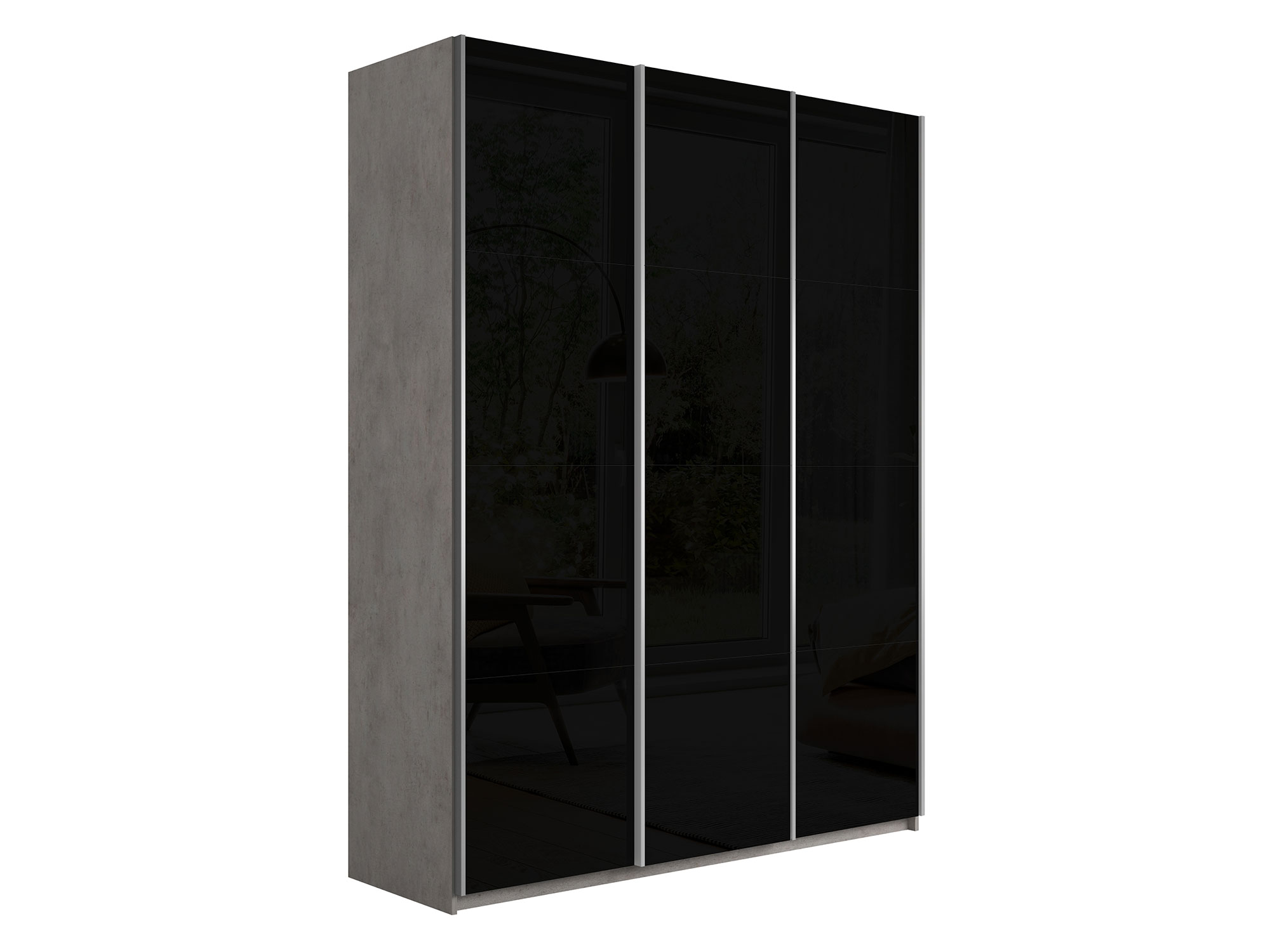 Шкаф-купе Прайм Широкий 3-х дверный три черных стекла Бетон