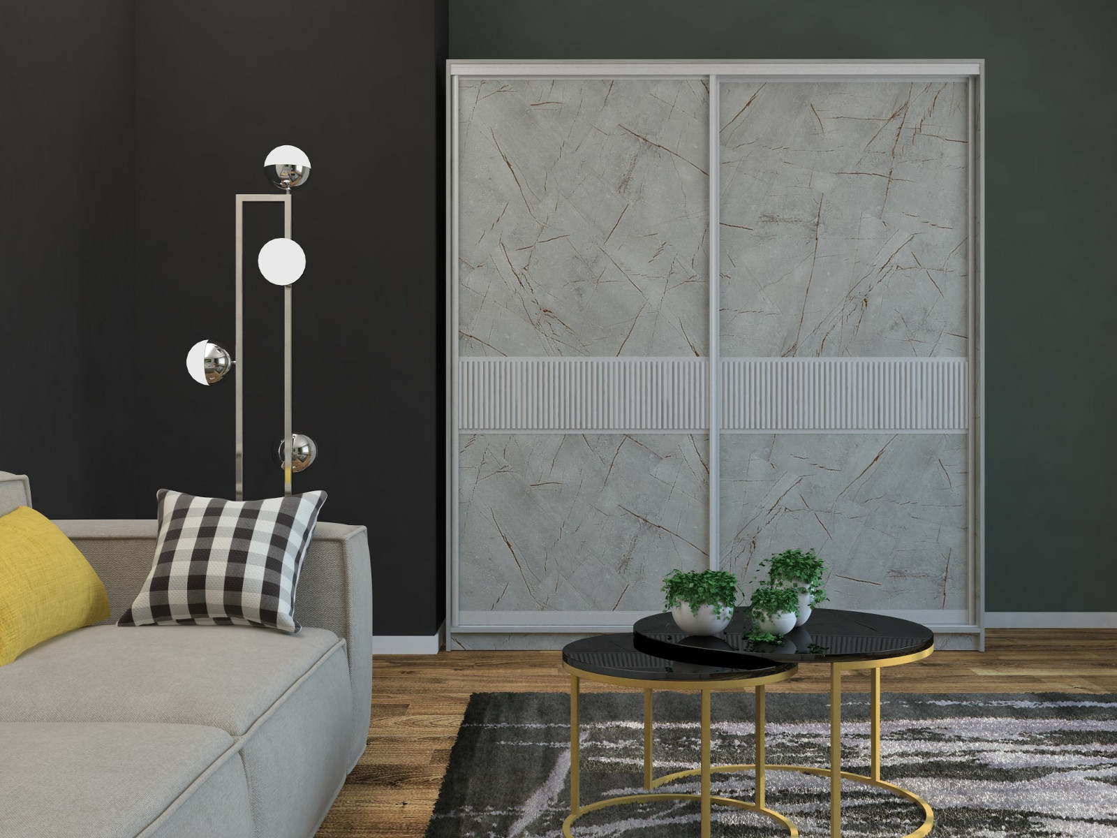 Шкаф-купе Юлия 2000 узкая рельефная вставка МДФ Каспий светлый
