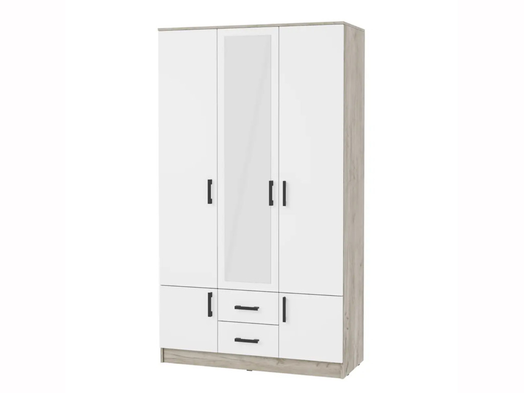 Шкаф Ронда ШК-3 с зеркалом дуб крафт серый, белый