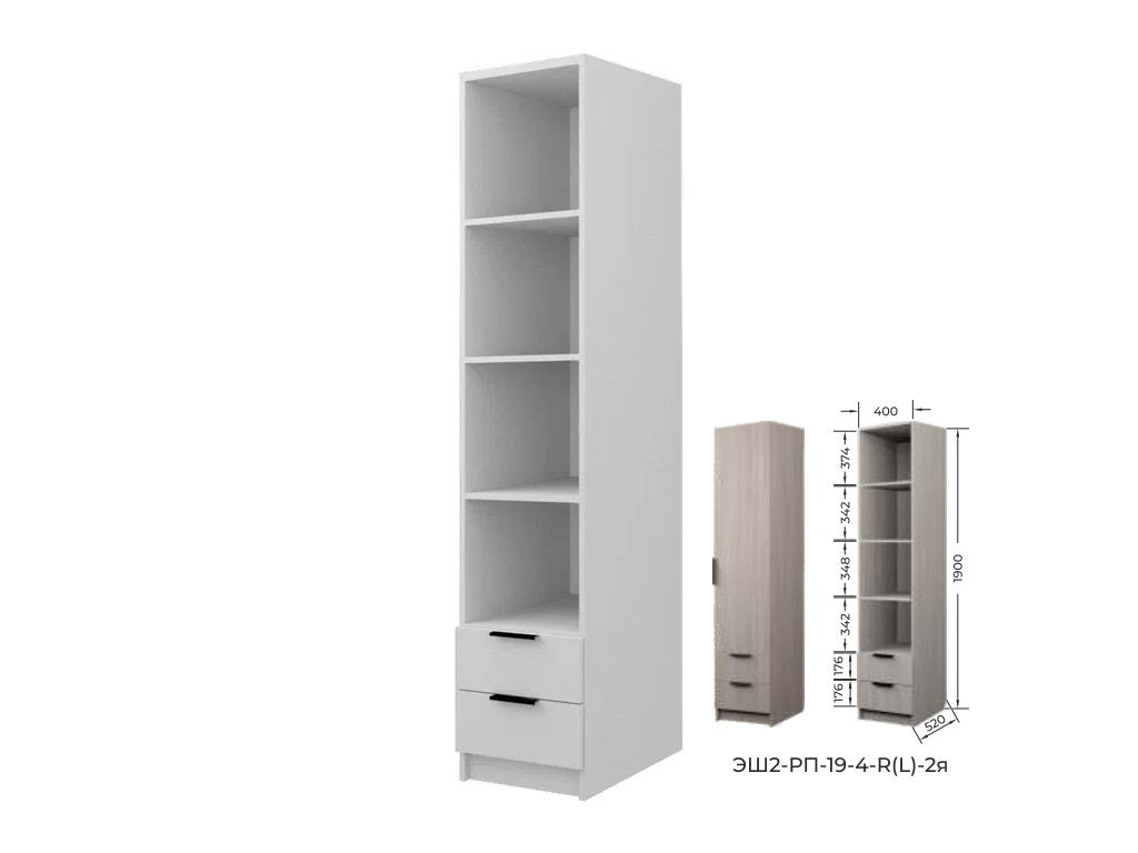 - Шкаф с 2 ящиками с полками Экон ЭШ2-РП-19-4-R-2я с зеркалом