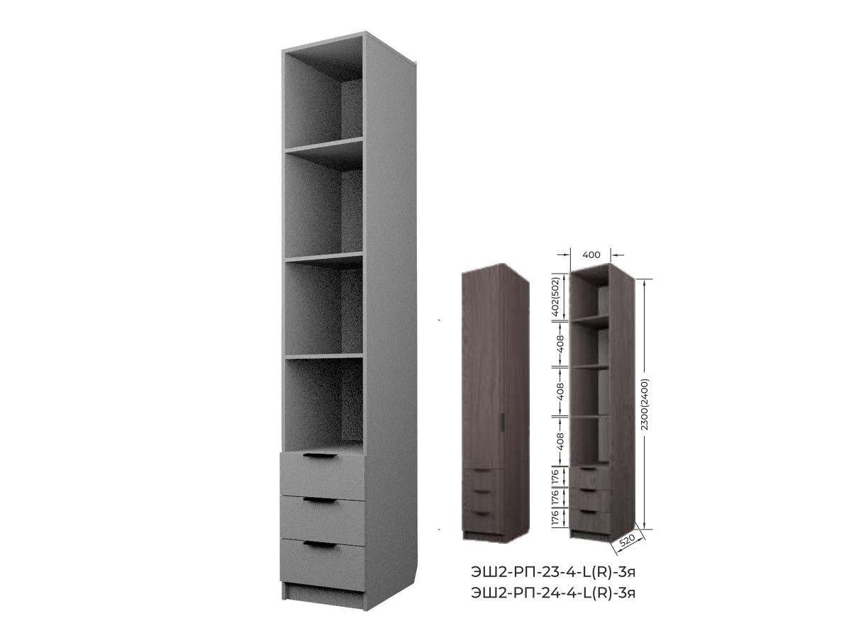 Комплект: ЭШ2-РП-23-4-R-3я,Шкаф с 3 ящиками + ЗС-23-3я,Зеркало для шкафов ЭШ 2300 мм