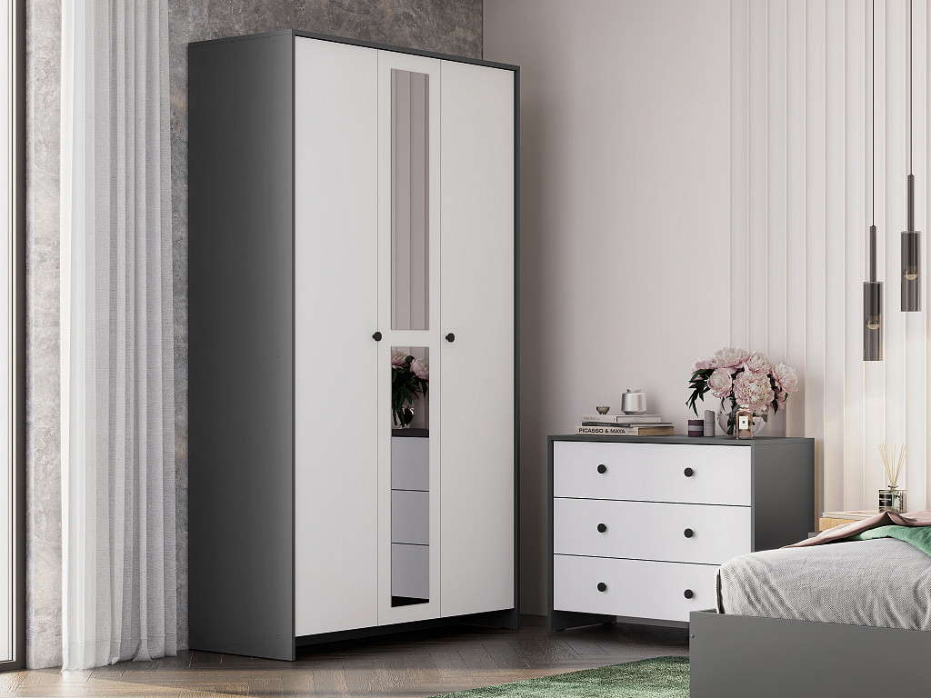 Шкаф трехстворчатый Дольче Графит/Белый