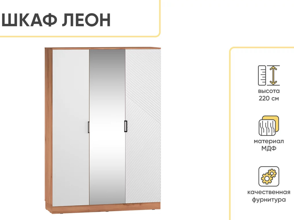 - Шкаф трехстворчатый Леон Дуб бунратти/Белый