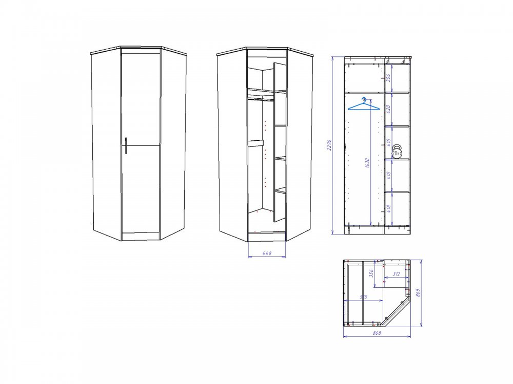 Размер ШхГхВ: 879*879*2300 мм