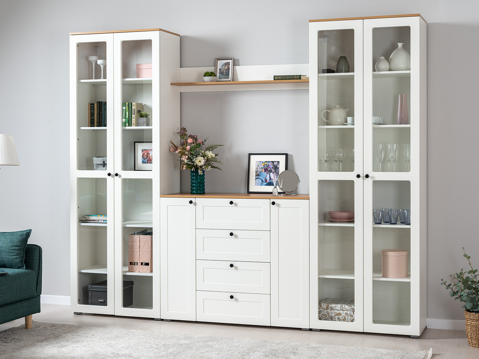- Шкаф-витрина 16.394.02 Остин Белый шагрень