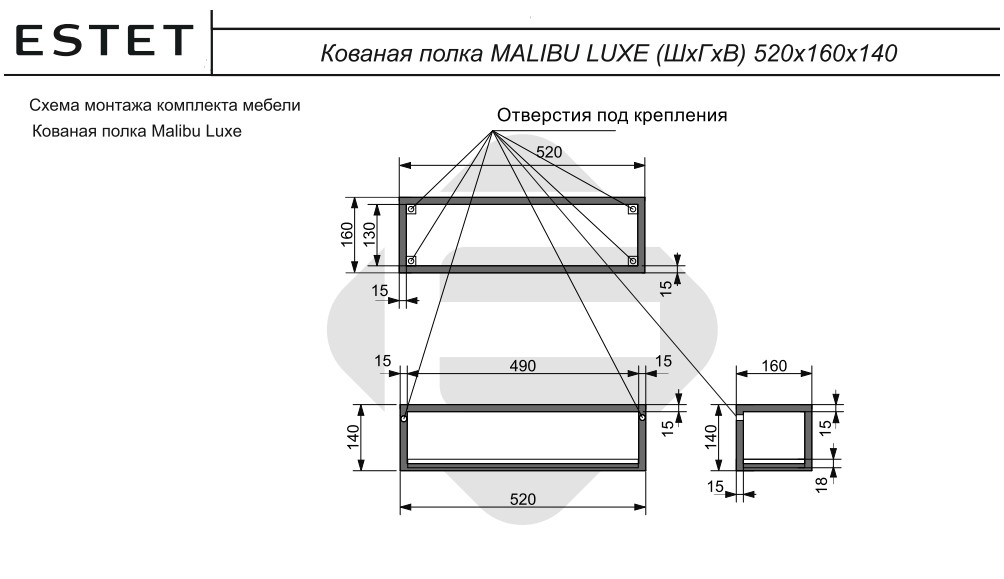 - Кованая полка Malibu Luxe