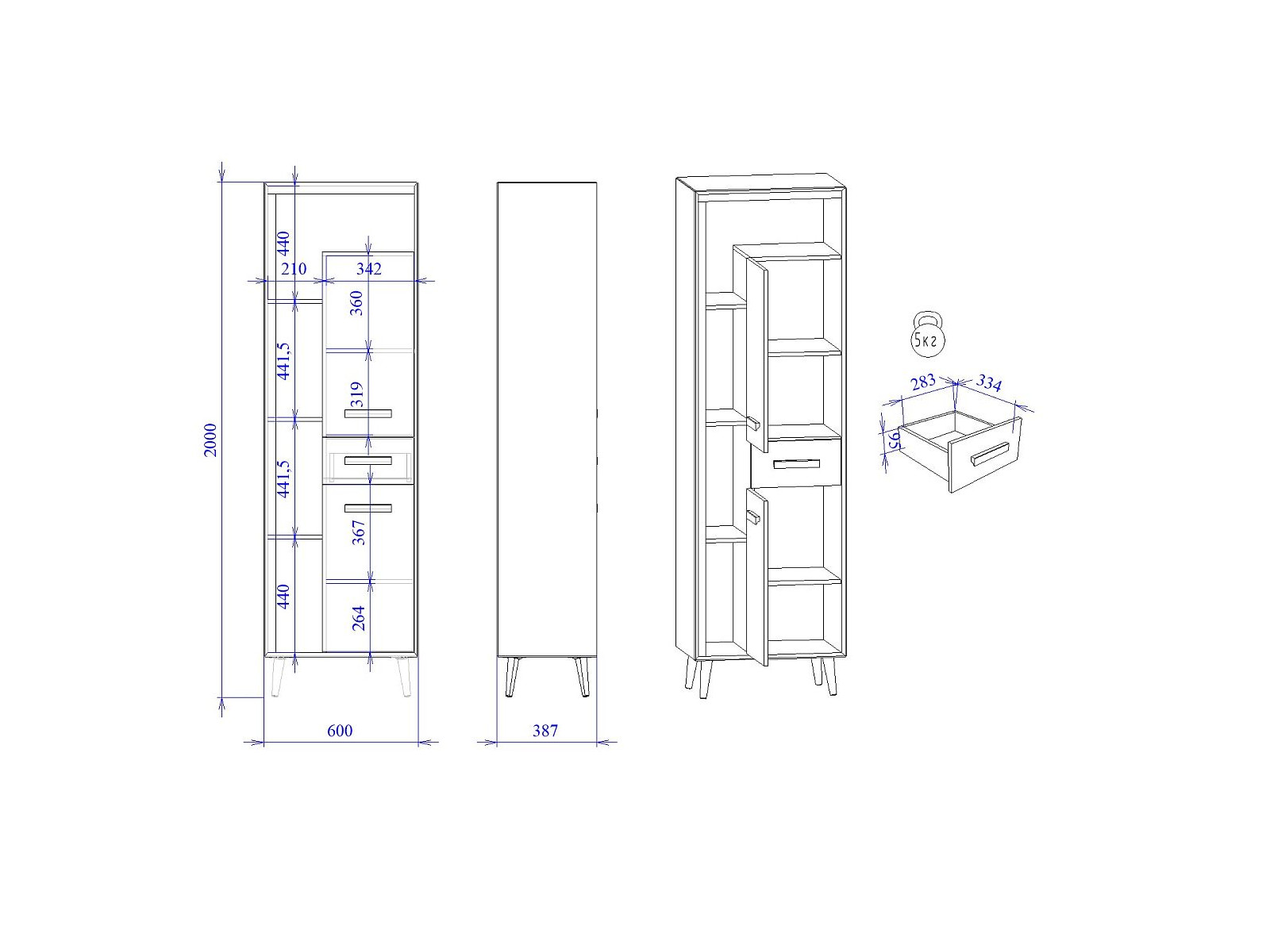 - Высота (мм) 2000
