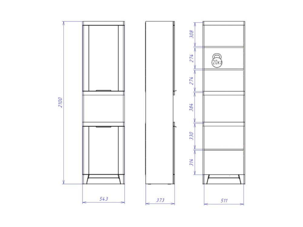 Размер ШхГхВ: 543*373*2100 мм