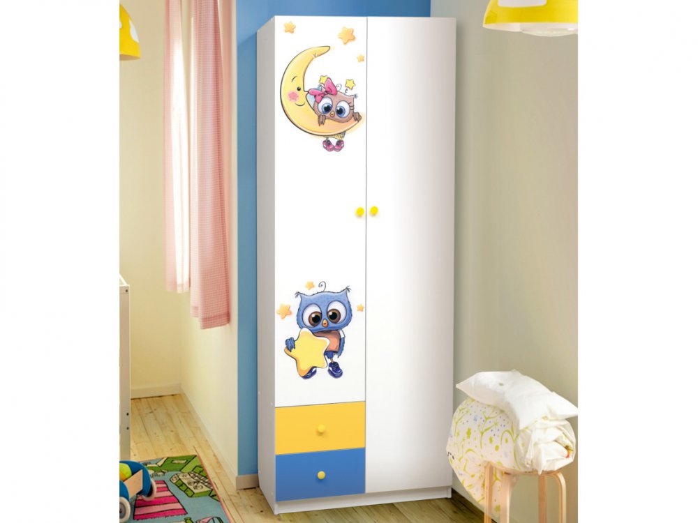 Шкаф двухдверный с ящиками и фотопечатью Совята 2.1