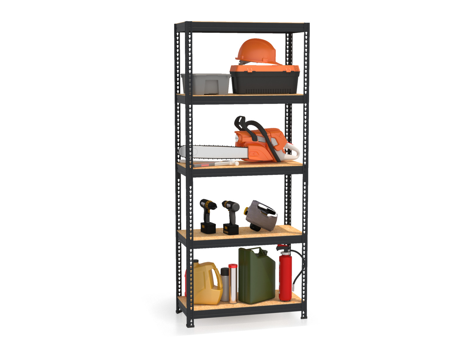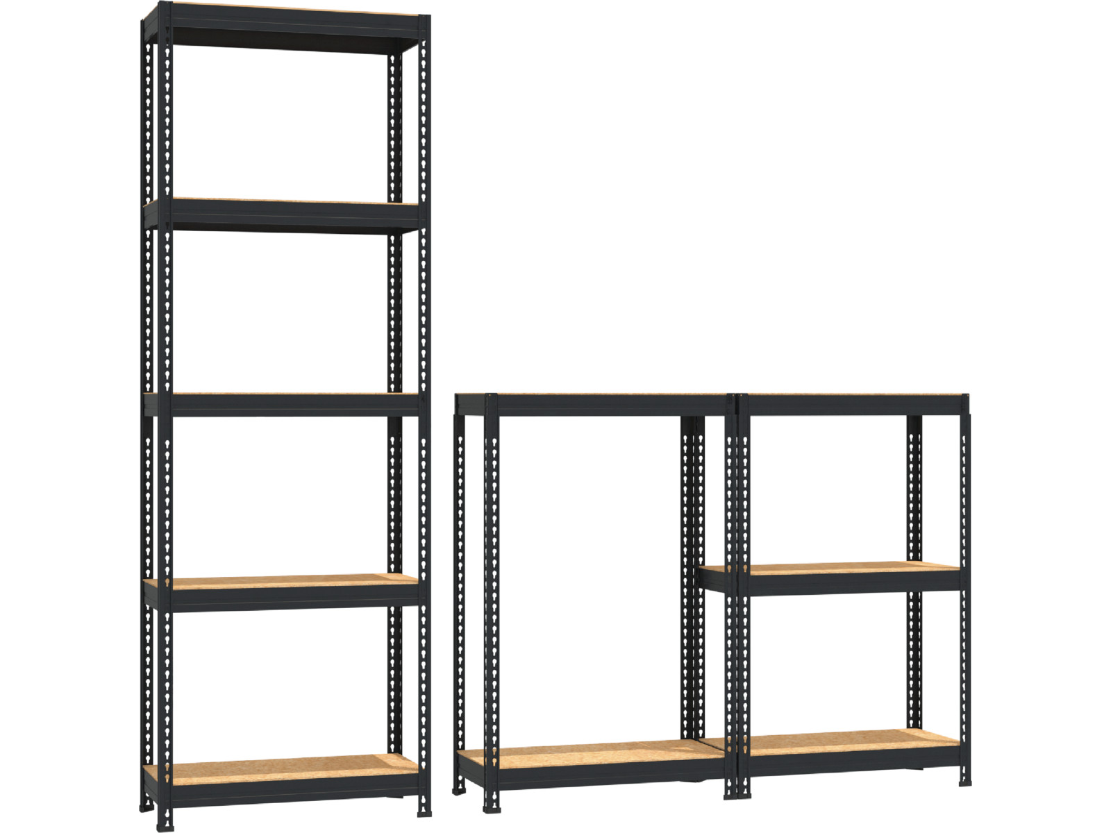 Перестановка горизонтальных ярусов стеллажа не требует демонтажа всего стеллажа и специальных крепежных элементов. Максимальная равномерно распределенная нагрузка на каждый ярус не должна превышать 170 кг (на верхний ярус - 100 кг).