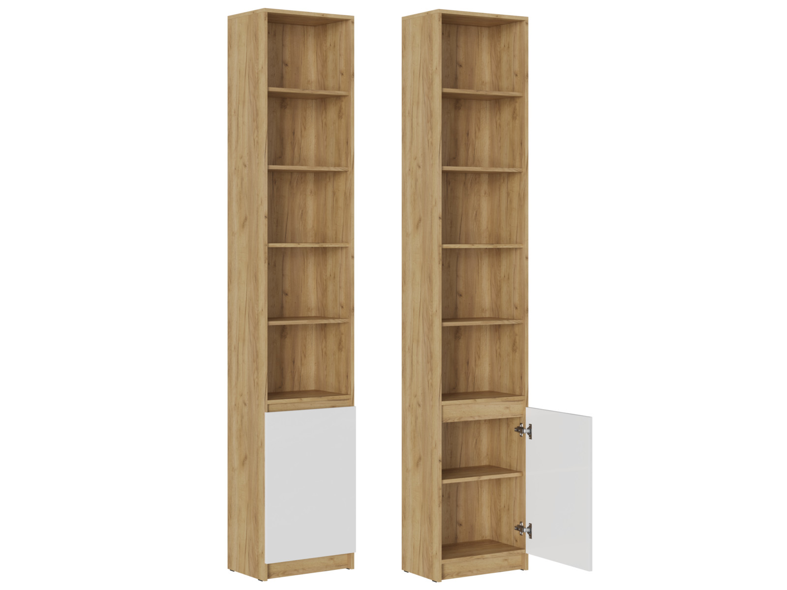 Створку можно закрепить и на левую, и на правую боковину стеллажа.